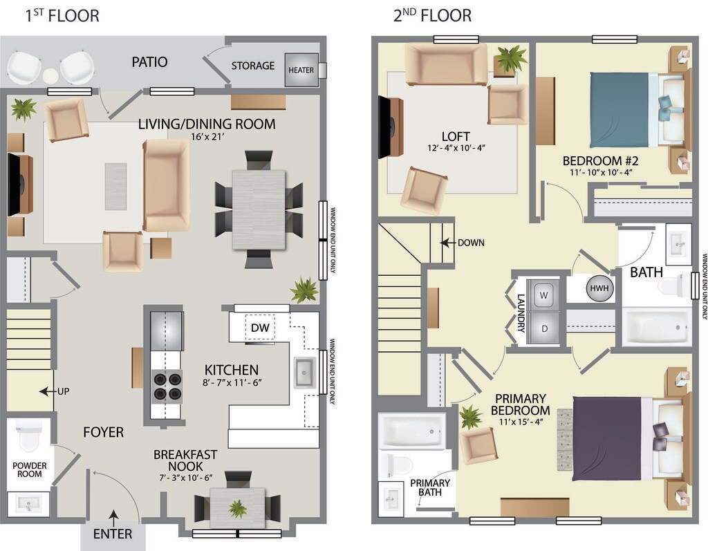 2 Beds, 2.5 Baths, 1242 sq ftAvailable Nov 29Model Gallery