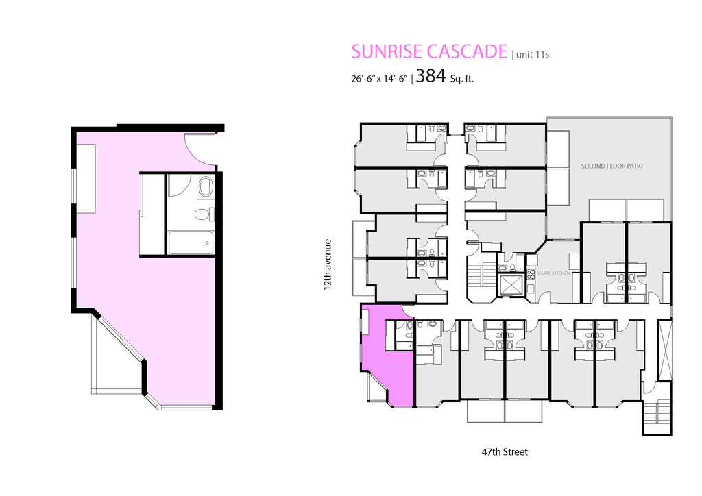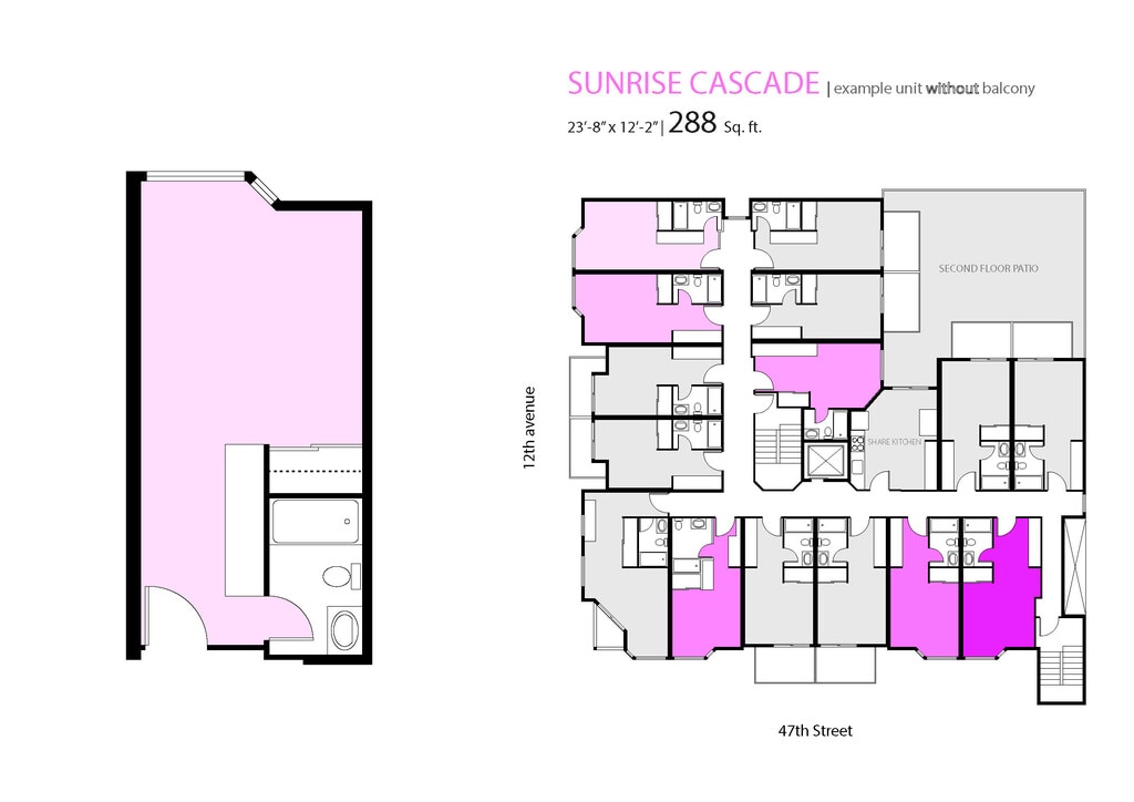 Sunrise Cascade Mini Studios are ideally located in the University District, a short walk from the University of Washington, supermarket, near several major bus lines, and with quick access to the freeway, the mini-studios at Sunrise Cascade are perfect for students. Each mini-studio includes a private bathroom and kitchenette (equipped with a mini-fridge and a microwave). There is a full-size shared kitchen on each floor and a shared laundry room on the ground floor. Units have a lease with a flexible start date to August 31st, 2026. Security deposit $400 refundable and $100 non-refundable fee for carpet cleaning and administrative costs First and last month's rent due at lease signing. Utilities and internet not included. Renter's insurance is required. Secure underground parking is $150 per month with a $100 refundable remote and key deposit *no pets, no smoking, single occupancy only!* Please reach out to us to see more details and schedule tours.