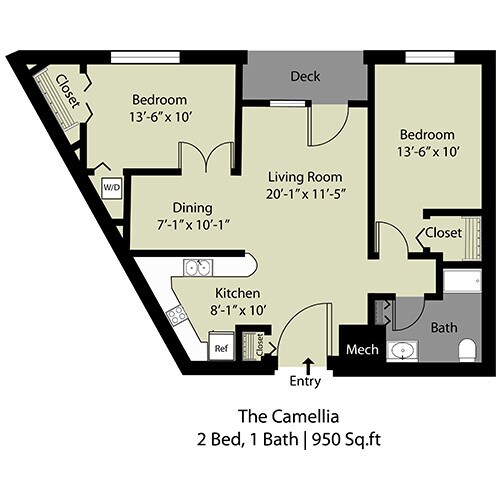 Apartment Model: The Camellia - 2 Bed/1 Bath$1,4352 Bedroom, 1 Bath, 950 sq ftAvailable February 2, 2026![]()