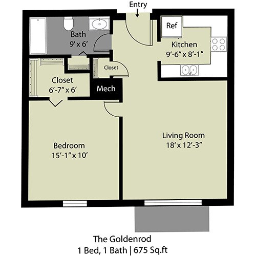 The Golden Rod - 1 Bed/1Bath - Floorplan 1 The Ivy - 1 Bed/1 Bath