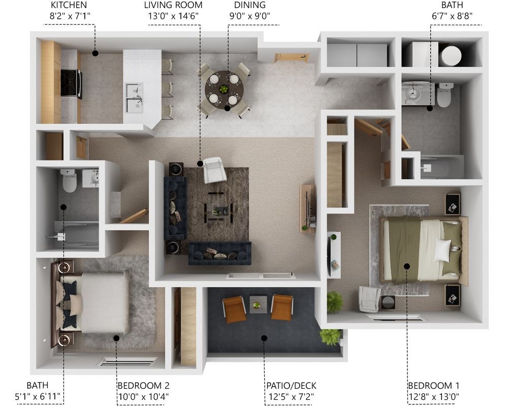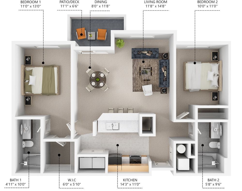 2 Beds, 2 Baths, 1008 sq ftAvailable NowModel Gallery