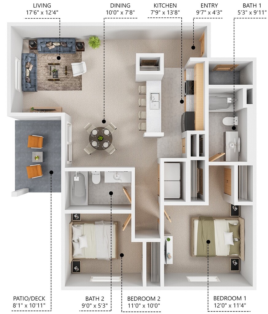 Apartment Model: B2 - BarbadosFrom $9522 Bedroom, 2 Bath, 1018 sq ftAvailable Now![]()