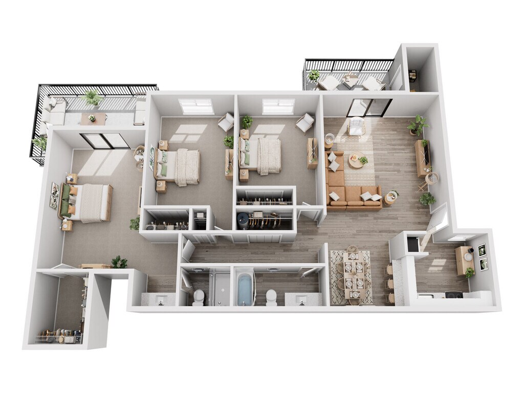 B1 - Floorplan 1 Apartment Unit: D211Apartment Model: B1$1,8842 Bedroom, 2 Bath, 1200 sq ftAvailable Now3 Bedrooms