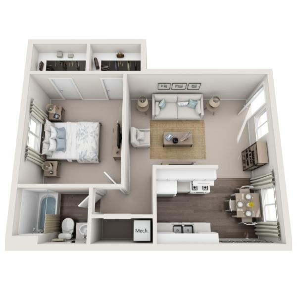 Apartment Model: A1From $8501 Bedroom, 1 Bath, 711 sq ftUnavailable![]()