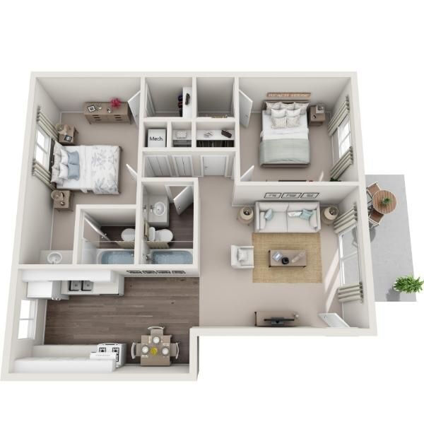 2 Beds, 2 Baths, 958 sq ftModel Gallery