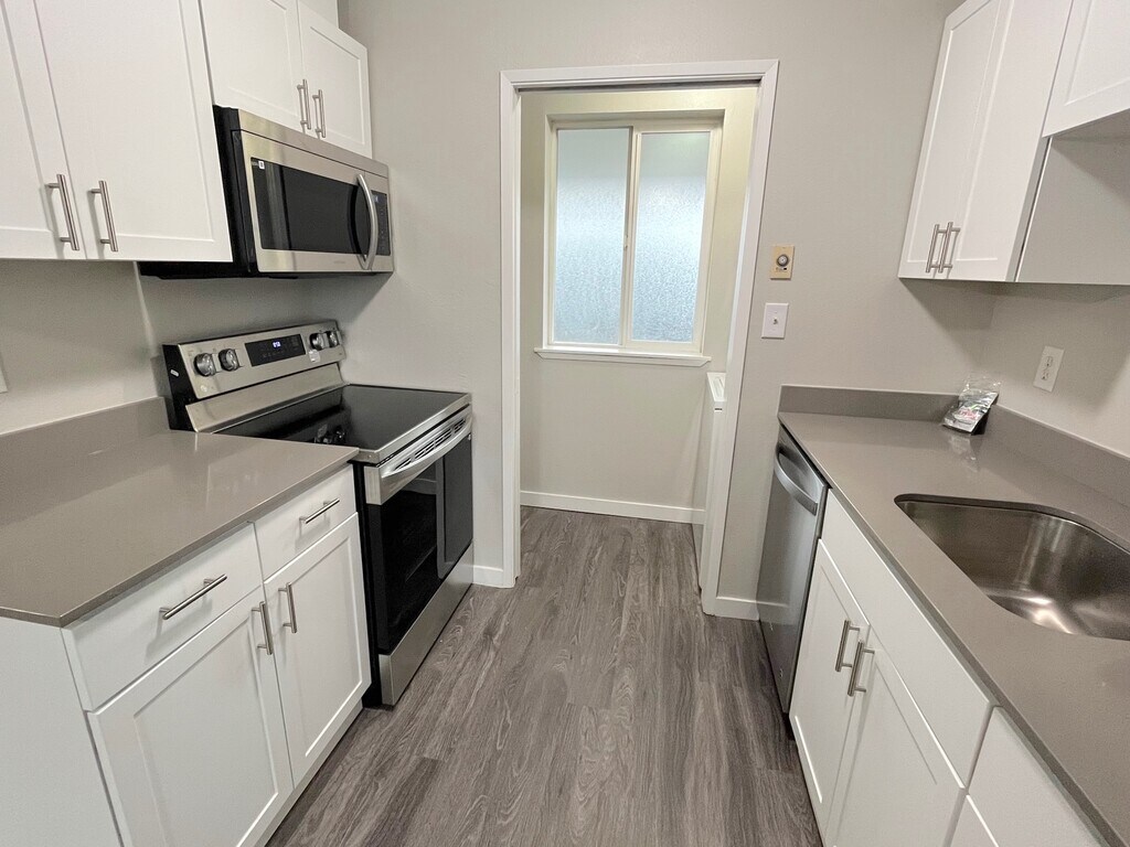 FIRST MONTH FREE! Sunrise Terrace is a newer building is well maintained and in a quiet community. The complex is close to everything but set back off Main Street. Each spacious unit is completely remodeled including quartz countertops, LVP flooring, shaker cabinets, stainless steel appliances and in unit washer/dryers. Conveniently located just a few miles south of downtown Tacoma and just minutes to Charlotte's Blueberry Park, Wapato Lake and Dog Park, Larchmont Elementary School, and Baker Middle School. Complex is close to everything but set back off of main street. We are pet friendly with a large grass area on-site. Most importantly, we have a management team that truly cares.