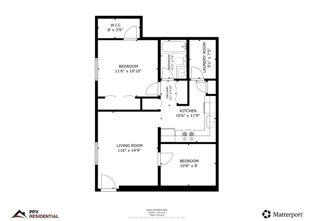 1 Bedroom, 1 Bathroom