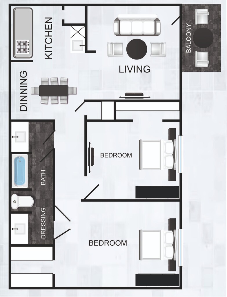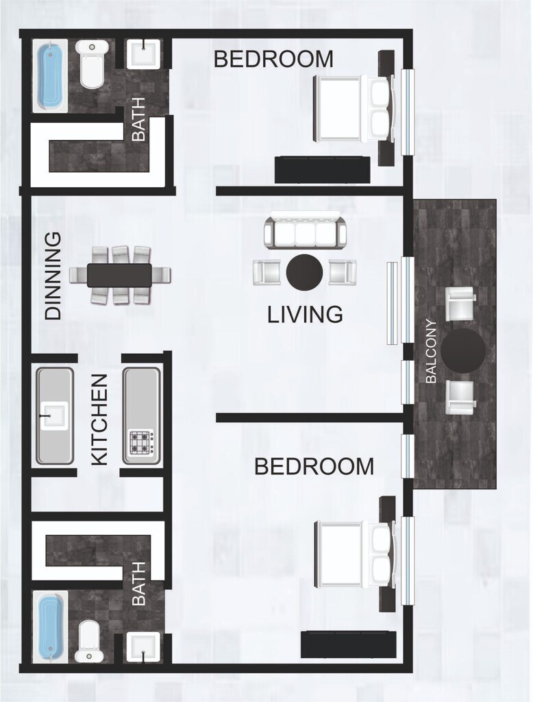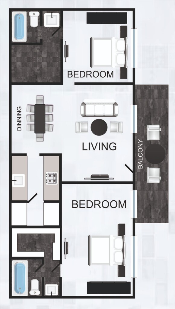 Apartment Model: B3$1,2232 Bedroom, 2 Bath, 1024 sq ftAvailable Now![]() - B3 - Floorplan 1