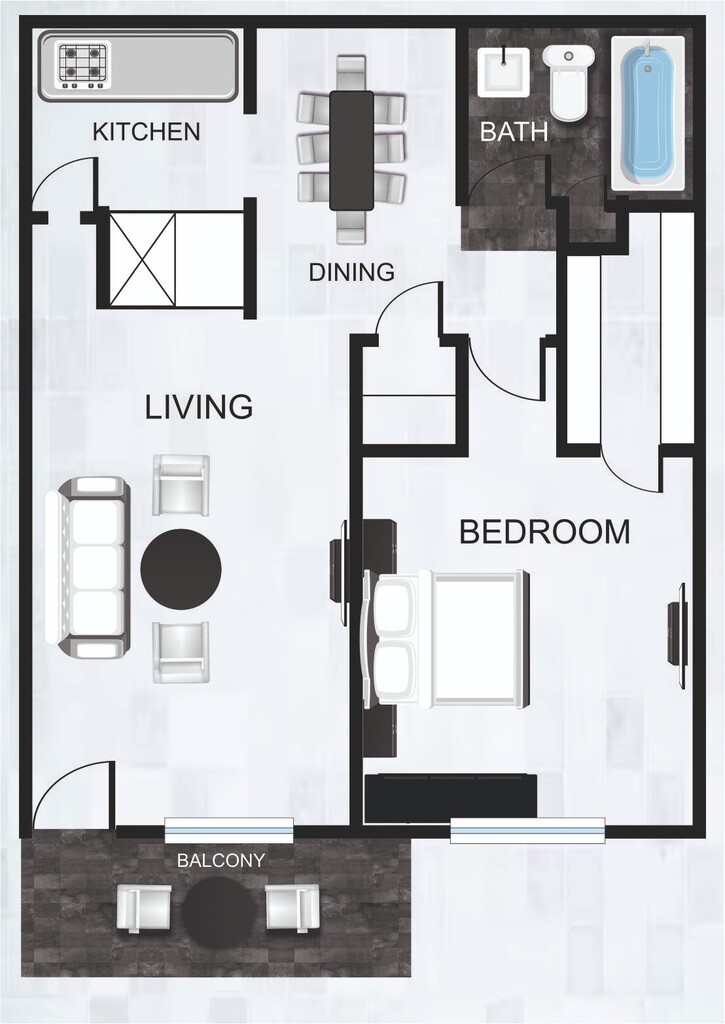 Apartment Model: A3$8231 Bedroom, 1 Bath, 633 sq ftAvailable Now![]() - A3 - Floorplan 1