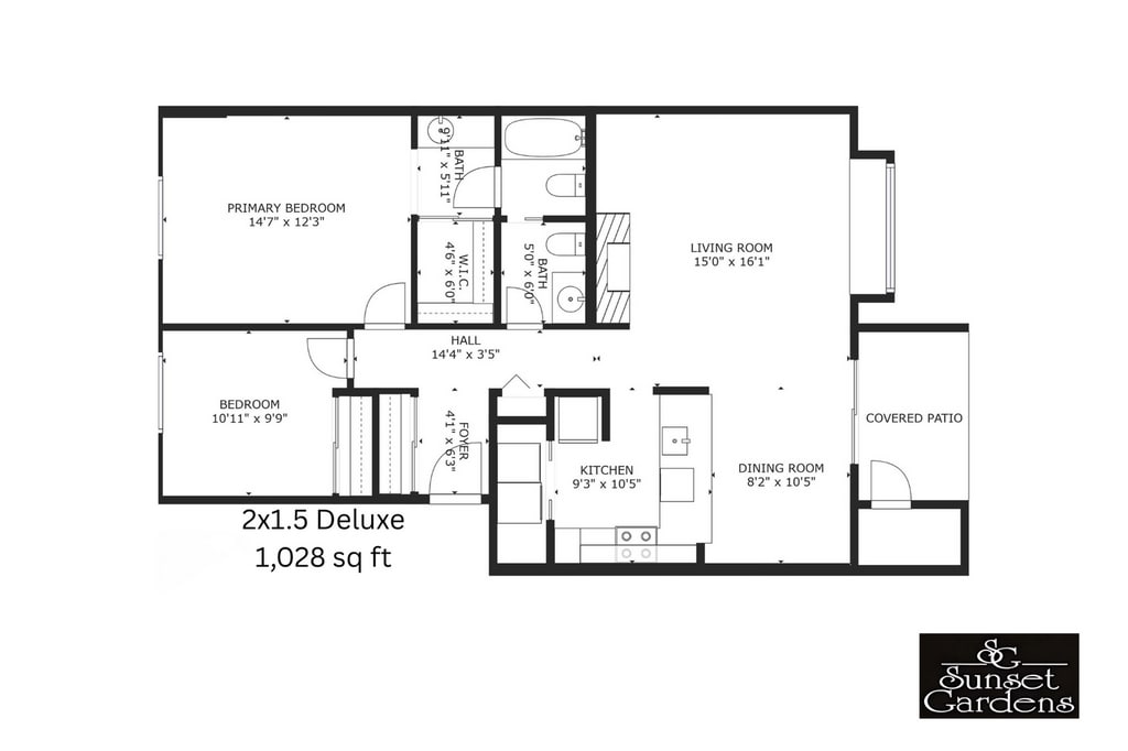Apartment Model: 2 Bedroom 1.5 Bath - DeluxeFrom $1,7902 Bedroom, 1.5 Bath, 1028 sq ftUnavailableFloorplansPhotos![]()