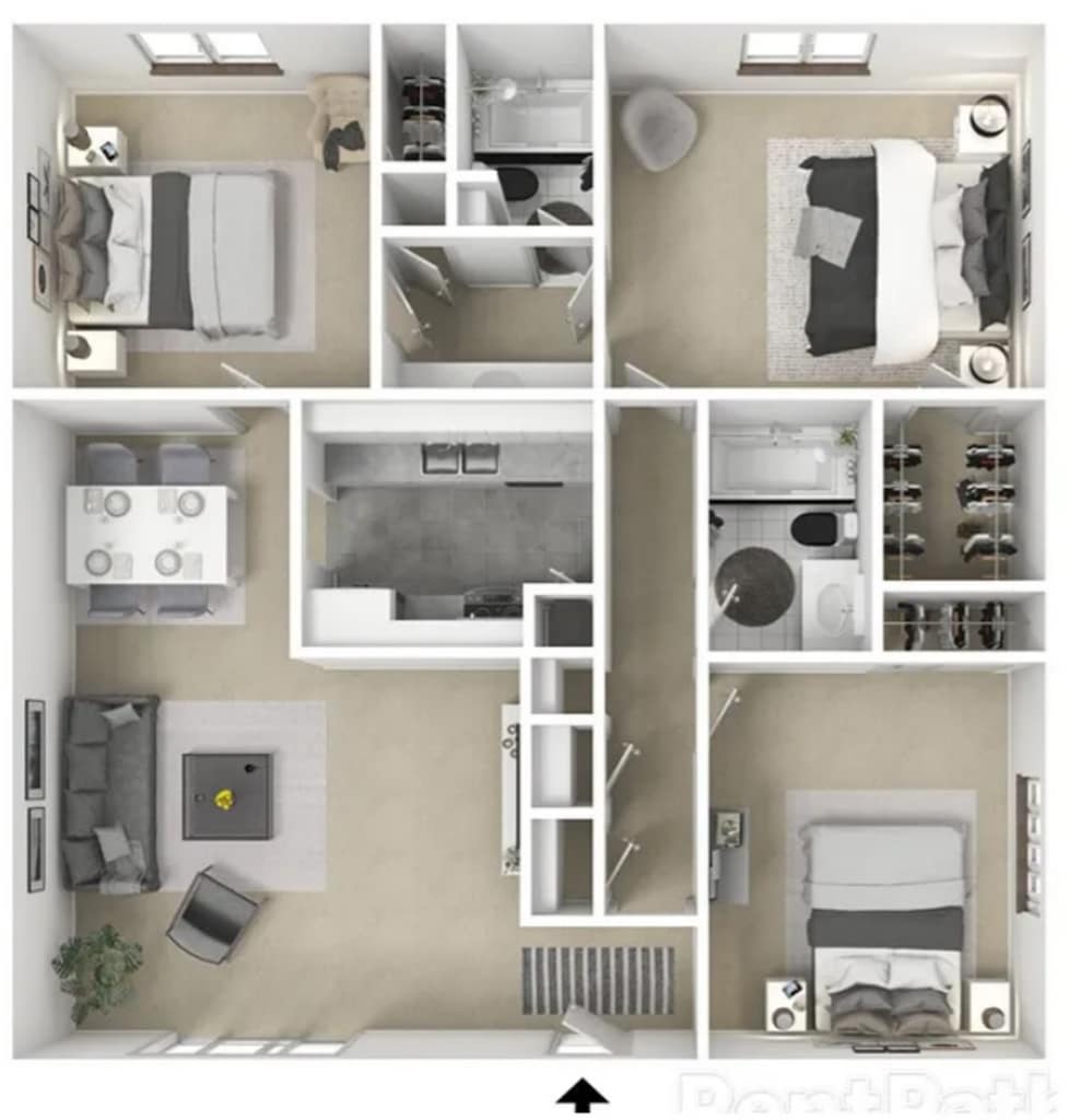 2 Beds, 1.5 Baths, 1250 sq ftAvailable NowLargest 2 BedroomThis is the largest 2 Bedroom at this PropertyModel Gallery