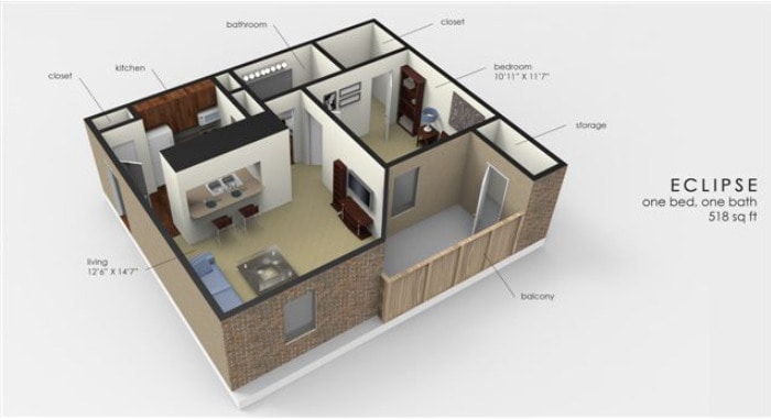 1 Bed, 1 Bath, 518 sq ftAvailable NowModel Gallery
