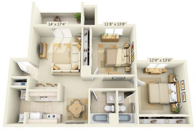 3 Beds, 2 Baths, 1174 sq ftAvailable NowModel Gallery