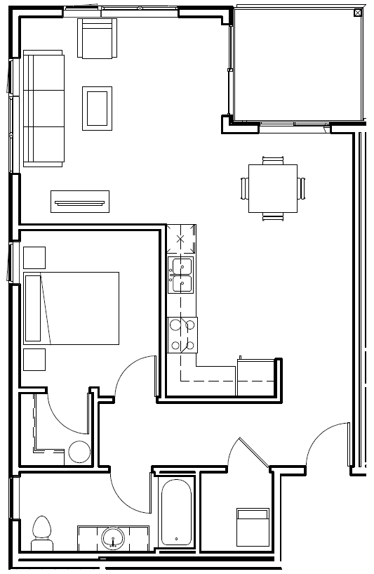 Studio, 1 Bath, 525-534 sq ftAvailable NowModel Gallery