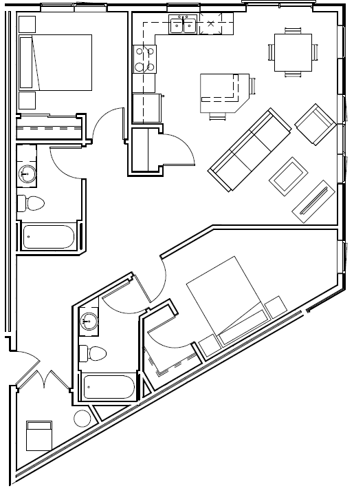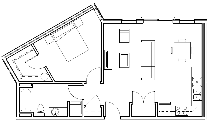 B5 - Floorplan 1 Apartment Unit: 405Apartment Model: B51 Bedroom, 1 Bath, 696 sq ftAvailable NowFloorplan B1