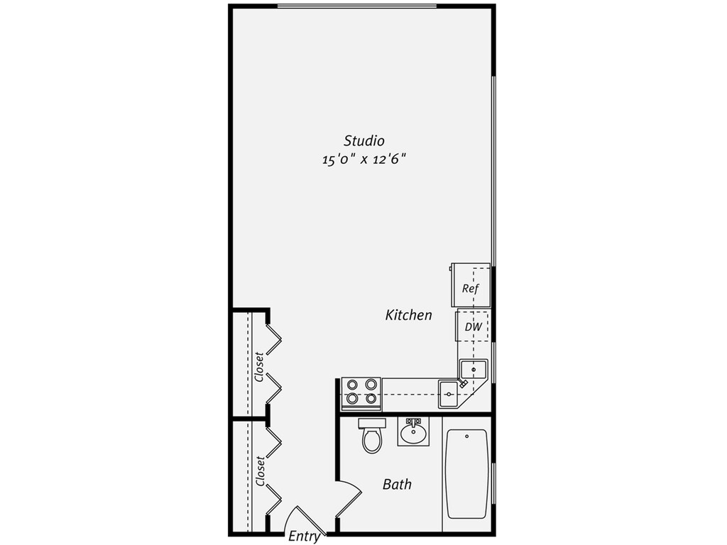 Studio, 1 Bath, 332 sq ftAvailable May 2Model Gallery