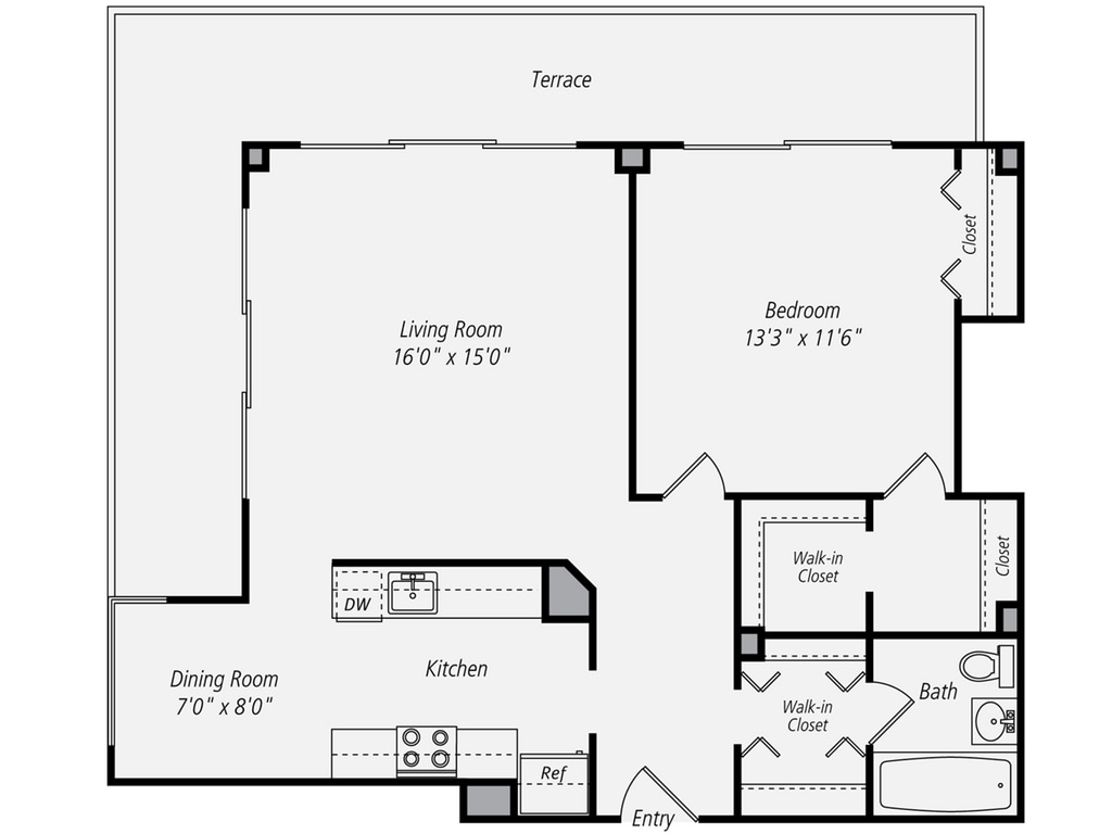E1R - Floorplan Apartment Unit: 2-3EApartment Model: E1R$4,5221 Bedroom, 1 Bath, 721 sq ftAvailable April 11, 2026Floorplan D1R