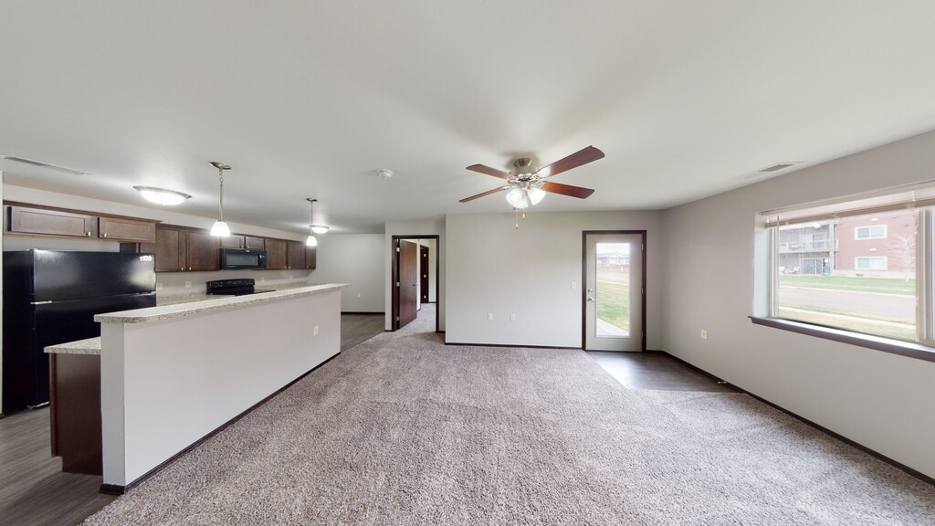 Our 1-bedroom apartment with an added den is a testament to spacious living. The den offers a versatile space, perfect for a home office or a hobby room. Each unit is equipped with a patio or deck, black appliances, dishwasher, microwave, and an in-unit washer & dryer, ensuring a seamless living experience. Revel in Sunset Villas' community amenities. From the refreshing outdoor pool to the lively community room and the state-of-the-art fitness room, there's always something to engage in. Enjoy the convenience of on-site parking, available garages, and our dedicated leasing office, always ready to assist. Located in the bustling west side of Sioux Falls, every amenity is at your fingertips. Discover the vibrant life at Sunset Villas. Book a tour and see why it's the perfect place to call home. *Rent rates and availability are subject to change. Images, 3D tours, and renderings of units may be similar to available units and do not necessarily represent the specific units available. Please contact the property for current rates and unit availability.