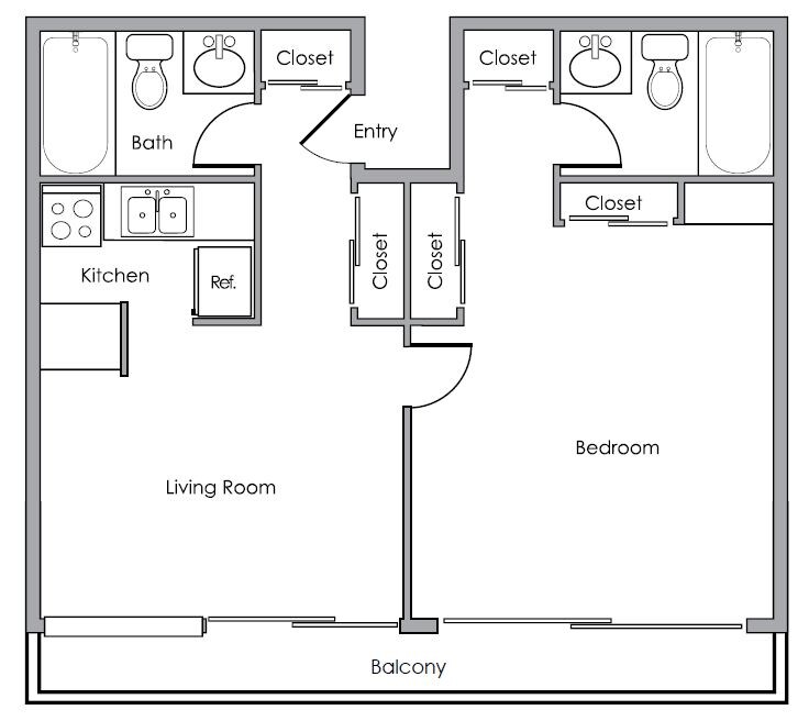 1 Bedroom 1 Bathroom - Floorplan 11 Apartment Unit: Unit 109Apartment Model: 1 Bedroom 1 Bathroom$2,4651 Bedroom, 1 Bath, 600 sq ftAvailable Now1 Bedroom 2 Bathroom