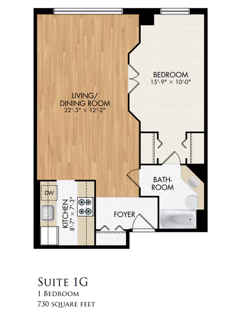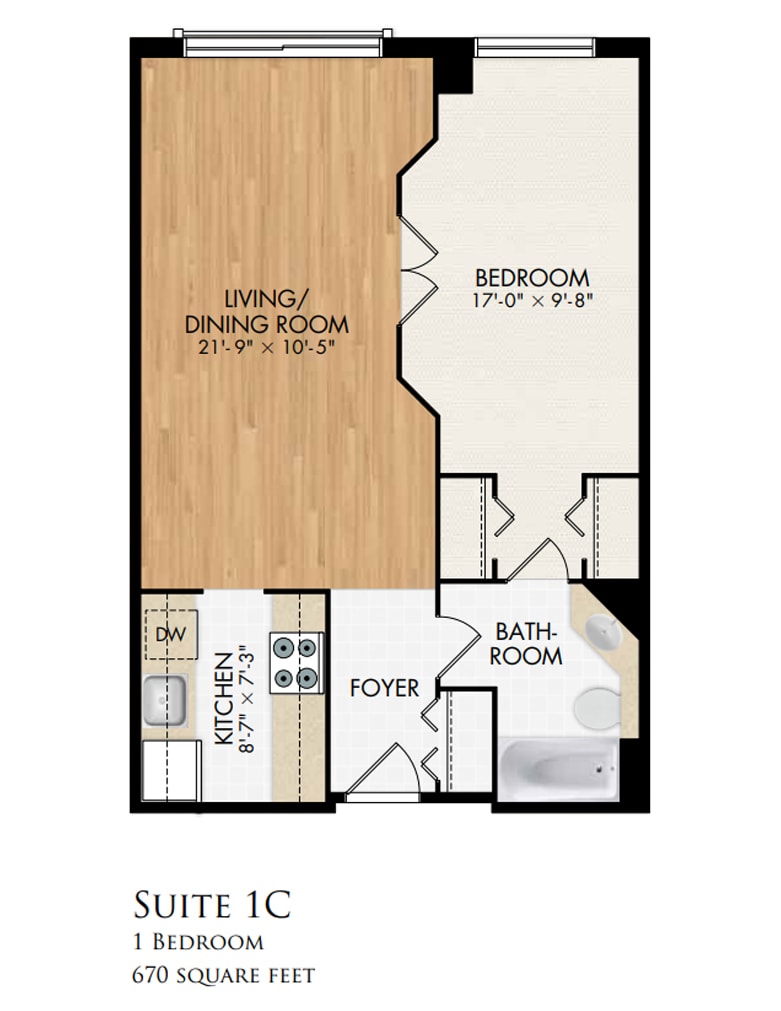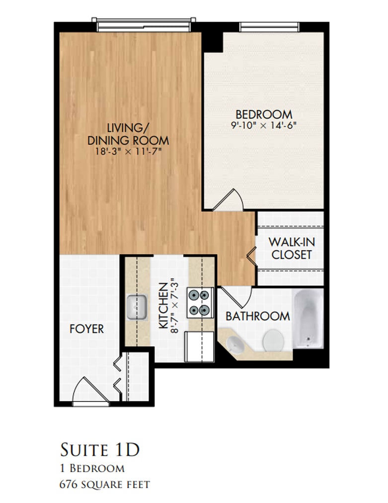 1 Bed, 1 Bath, 670 sq ftAvailable NowModel Gallery