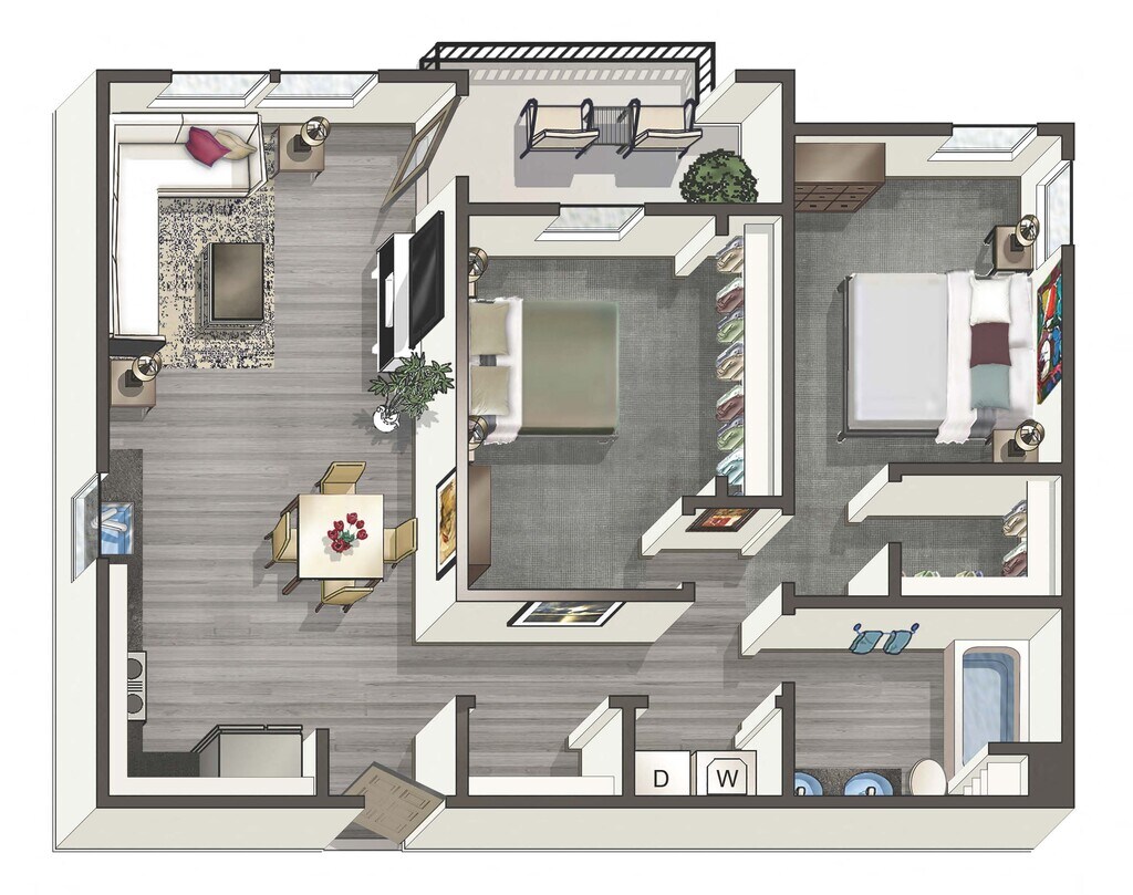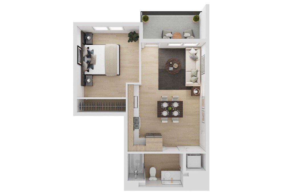 1 Bed, 1 Bath, 607 sq ftAvailable NowModel Gallery