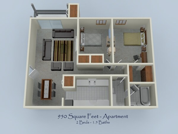 2 Beds, 1 Bath, 950 sq ftAvailability Details