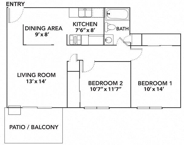2 Beds, 1 Bath, 748 sq ftAvailable NowModel Gallery