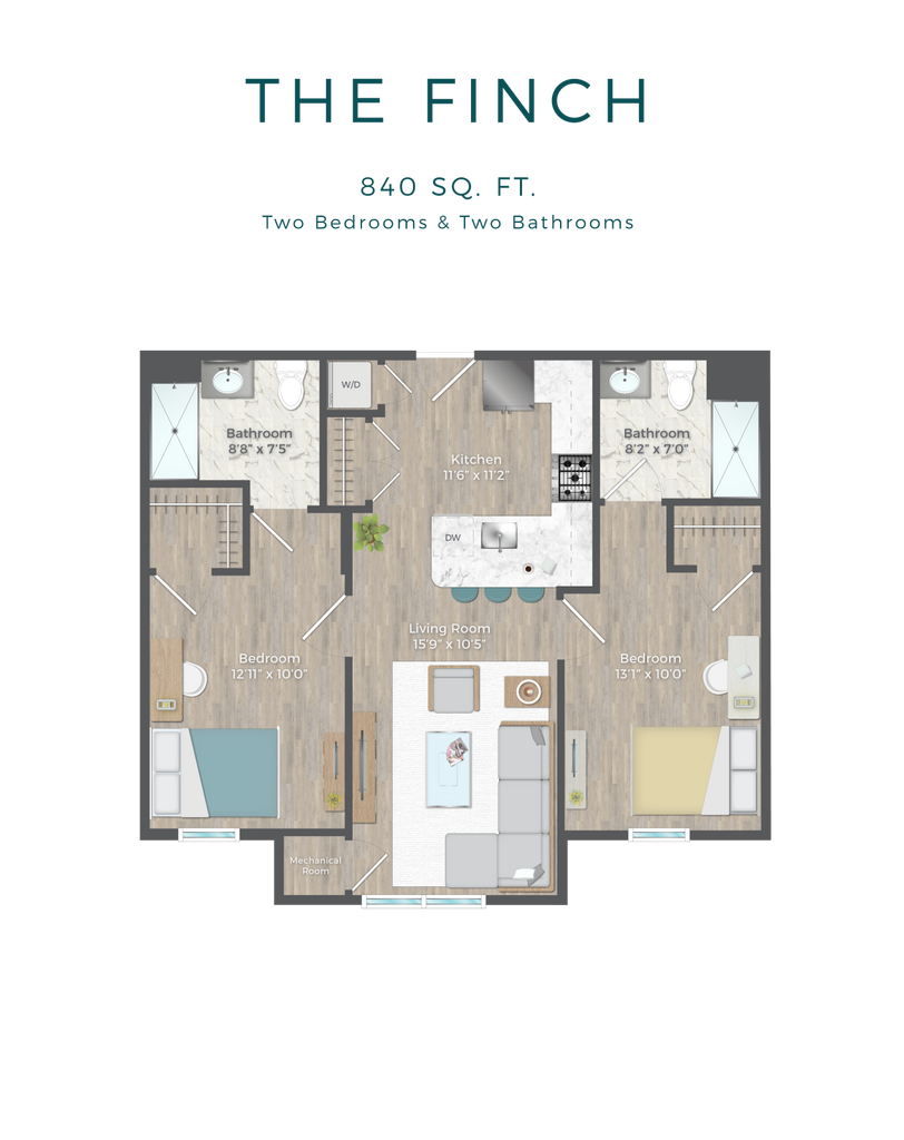 2 Beds, 2 Baths, 845 sq ftAvailable NowModel Gallery
