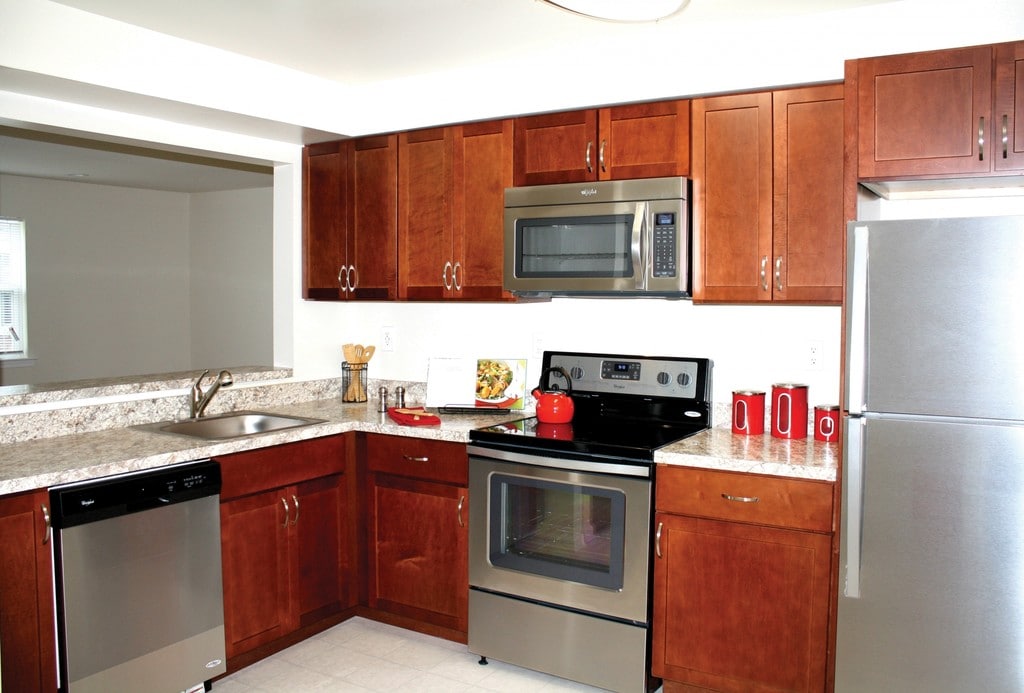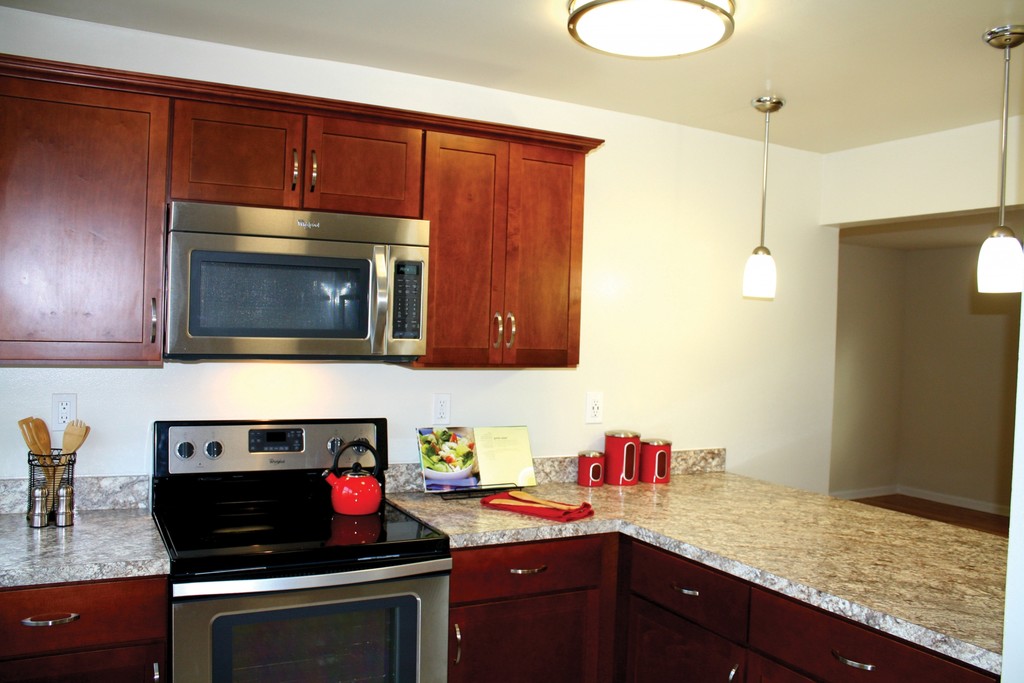 - Upgraded kitchens with new appliances: microwave, maple cabinets, granite look countertops