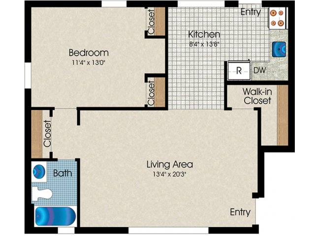 Standard One Bedroom - Floorplan 2 Apartment Unit: I-09Apartment Model: Standard One Bedroom$1,7951 Bedroom, 1 Bath, 700 sq ftAvailable January 30, 2026Kitchen Semi 1 Bedroom