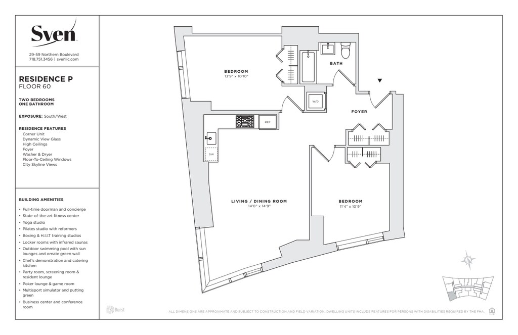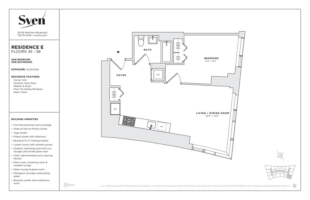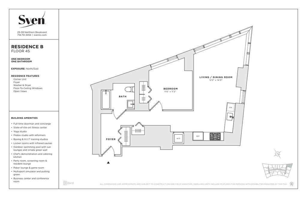 Sven Leasing Center: 29-59 Northern Boulevard, Long Island City, Queens Leasing Hours: Tue-Sun 10:00AM-6:00PM. Leasing Office is closed on Mondays. Please call or email for an appointment or schedule a tour online: • 9 to 24 -month lease terms available. Rates will vary by the lease term. Best available rate is advertised. • Pricing and availability change daily. Terms and conditions apply. • No fee • $1,000 reduced security deposit (for qualified applicants; restrictions apply) • Pet Friendly (two pets maximum, one Dog up to 65 lbs. -or- two dogs with a combined weight up to 65 lbs.; some breed restrictions apply) • The model images shown may not represent the specific home • Washer/dryer in all homes Just 10 minutes from Manhattan, Sven offers an unmatched experience; luxury living, exceptional amenities, and a location primed for exploration and access. Designed by Handel Architects, Sven offers studio to three-bedroom residences featuring light oak wood flooring, European quartz countertops, glass tile backsplashes, and stainless-steel appliances from Bosch and Liebherr. Spa-inspired bathrooms boast Italian wood cabinetry, Roca porcelain tile, and high-performance water fixtures. All residences are equipped with high-efficiency Blomberg washers and dryers. From WaterSense-labeled fixtures to double-paned windows, ENERGY STAR®-rated appliances to FSC and Cradle-to-Cradle-certified woodwork, all residences are equipped with sustainably sourced and innovative materials and systems that meet exacting standards. Select residences feature dynamic view glass that tints based on exterior light levels for optimized energy usage, comfort, and views. Brought to life by acclaimed architect Annabelle Selldorf, amenities at Sven are an extension of the residences — thoughtfully-designed spaces made to live work and thrive. From state-of-the-art cardio and yoga studios to an outdoor pool and sundeck, to stylish spaces to celebrate or unwind, Sven has something for every lifestyle. The development, which offers direct access to six subway lines, includes a one-half acre public park as well as the adaptive reuse of the historic Clock Tower, a landmarked 1927 building that originally housed the Bank of Manhattan. FARE Act Disclosure. This listing is intended to be used by prospective renters and may not be republished without the prior written consent of The Durst Organization. Absent an express written agreement or acknowledgment to the contrary, The Durst Organization and its affiliates (1) do not utilize the services of third-party brokers or agents in connection with the rental of residential apartments and (2) will not assume responsibility for any brokerage fees incurred by a prospective renter. The Durst Organization and its affiliates will not charge or collect fees from a prospective renter except for such fees as permitted by law and disclosed to the prospective renter.