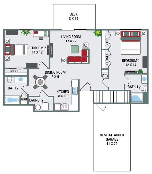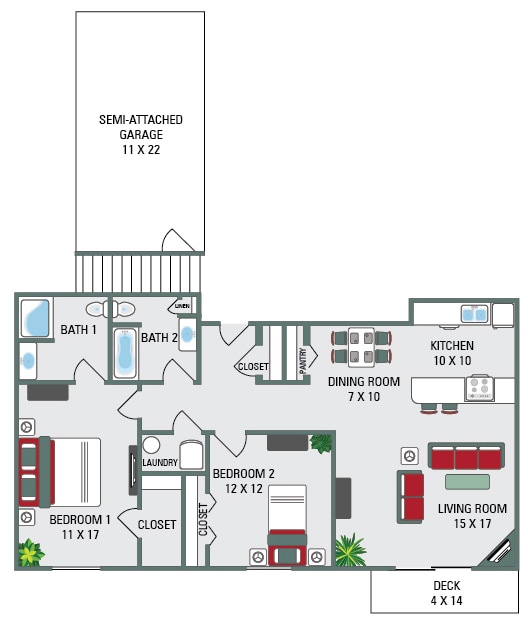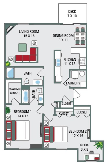 Apartment Model: The Breckenridge - 1260 Sqft$1,3102 Bedroom, 2 Bath, 1260 sq ftAvailable Now![]()