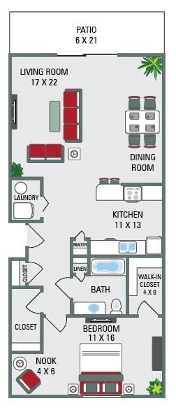 Apartment Model: The Breckenridge - 1021-1065 SqftFrom $1,2101 Bedroom, 1 Bath, 1021-1065 sq ftAvailable Now![]()