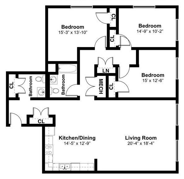 2 Bedroom - Floorplan 1 3 Bedrooms
