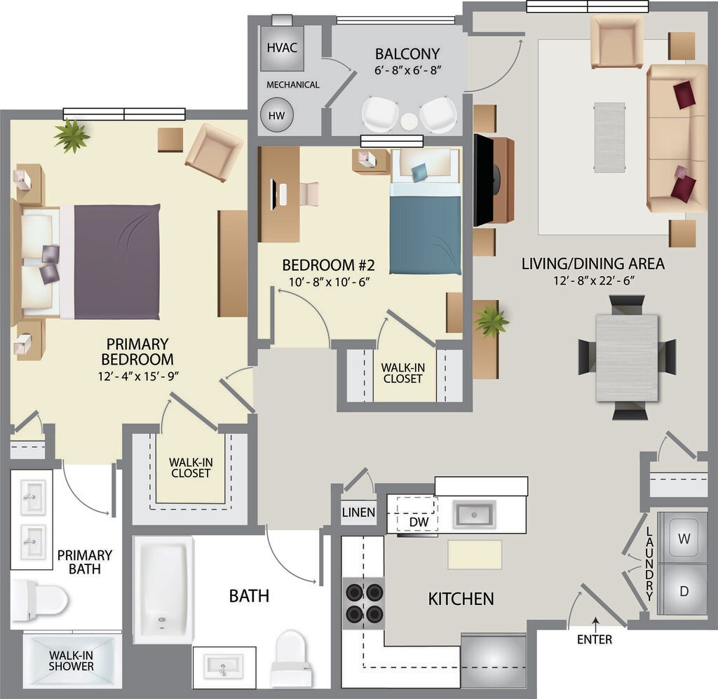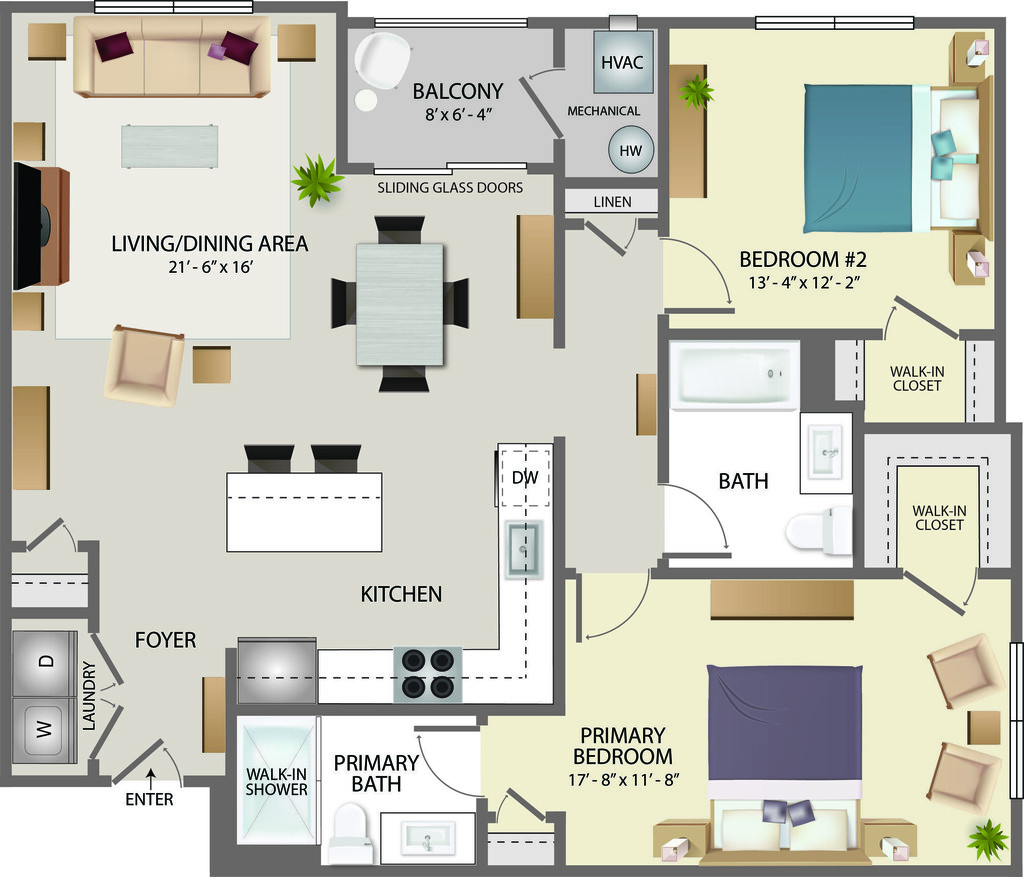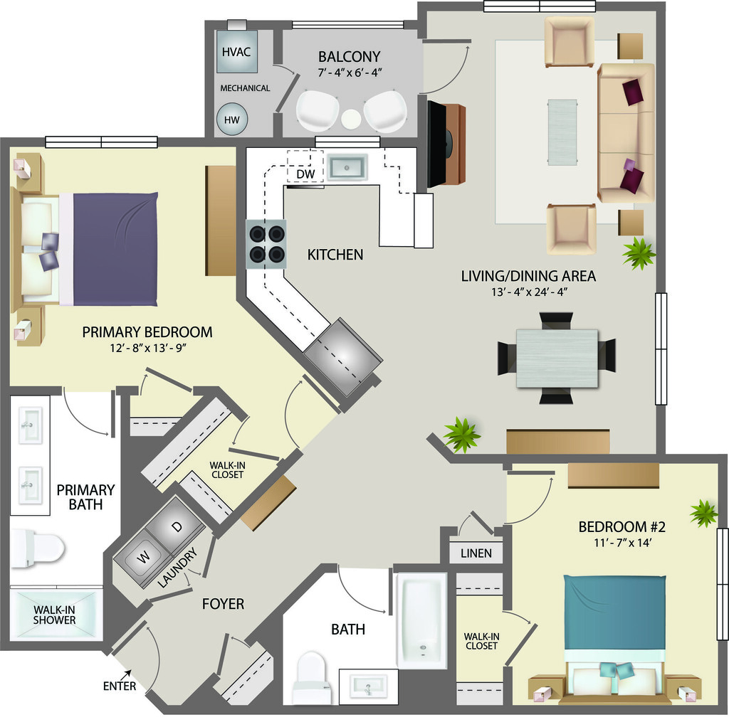 2 Beds, 2 Baths, 1297 sq ftAvailable February 9, 2026Largest 2 BedroomThis is the largest 2 Bedroom at this PropertyModel Gallery
