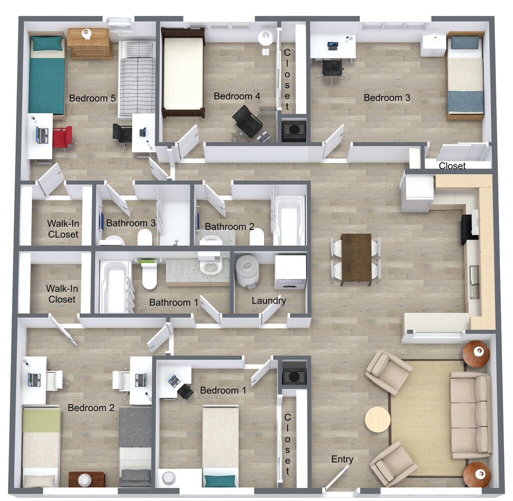 Apartment Model: Five-Bedroom5 Bedroom, 3 Bath, 1620 sq ftUnavailableFive-Bedroom - Image 1 Five-Bedroom - Image 2 Five-Bedroom - Image 3 Five-Bedroom - Image 4 Five-Bedroom - Image 5
