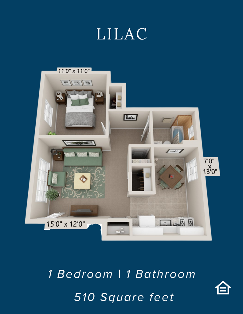 1 Bed, 1 Bath, 525 sq ftAvailable NowLargest 1 BedroomThis is the largest 1 Bedroom at this PropertyModel Gallery