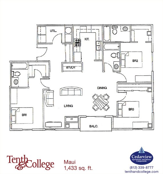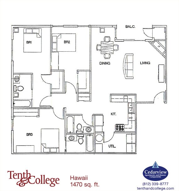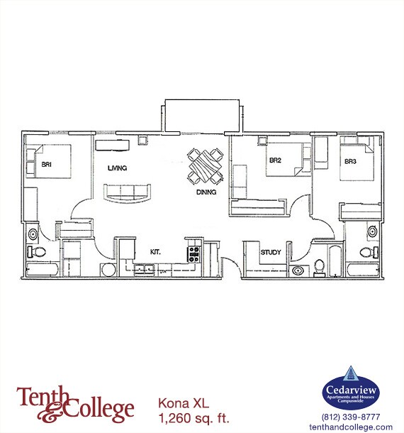 Kona - 3 Bed, 3 Bath - Floorplan 8 Apartment Unit: 312Apartment Model: Kona - 3 Bed, 3 Bath3 Bedroom, 3 Bath, 1200 sq ftAvailable August 10, 2026Kona XL - 3 Bed, 3 Bath