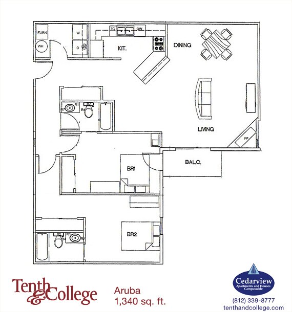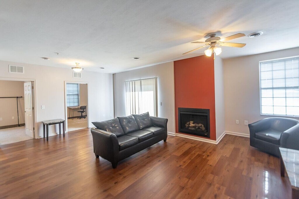 TOP FLOOR! The 3 bed, 3 bath "Kona XL" has an open floor plan with a balcony overlooking the courtyard. Living Room & Bedrooms (except mattresses) Furnished!