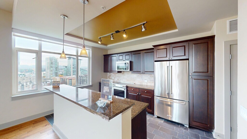TEN20 features one and two-bedroom apartments and townhomes for rent in Bellevue, WA. Blocks from Interstate 405 and the Meydenbauer Center, TEN20 is near several parks and the boutique shopping and eateries of Bellevue Square Mall. TEN20 boasts spectacular views of the Cascade and Olympic mountains, Lake Washington, and downtown Bellevue and Seattle; as well as a dedicated Concierge, resident club with fireplace, media lounge, coffee bar, and a state-of-the-art fitness center with an on-site personal trainer. Now offering furnished and unfurnished apartments, these Bellevue apartments feature high ceilings and window walls, beautiful hardwood, and travertine flooring, a kitchen with granite slab countertops and stainless steel appliances, and bedrooms large enough for your king-size bed. TEN20 offers breathtaking views while the best of Bellevue is just steps from your front door.