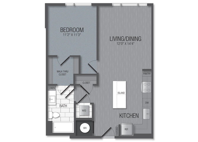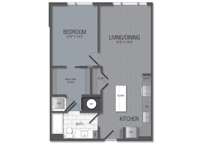 Studio, 1 Bath, 597 sq ftAvailable NowModel Gallery