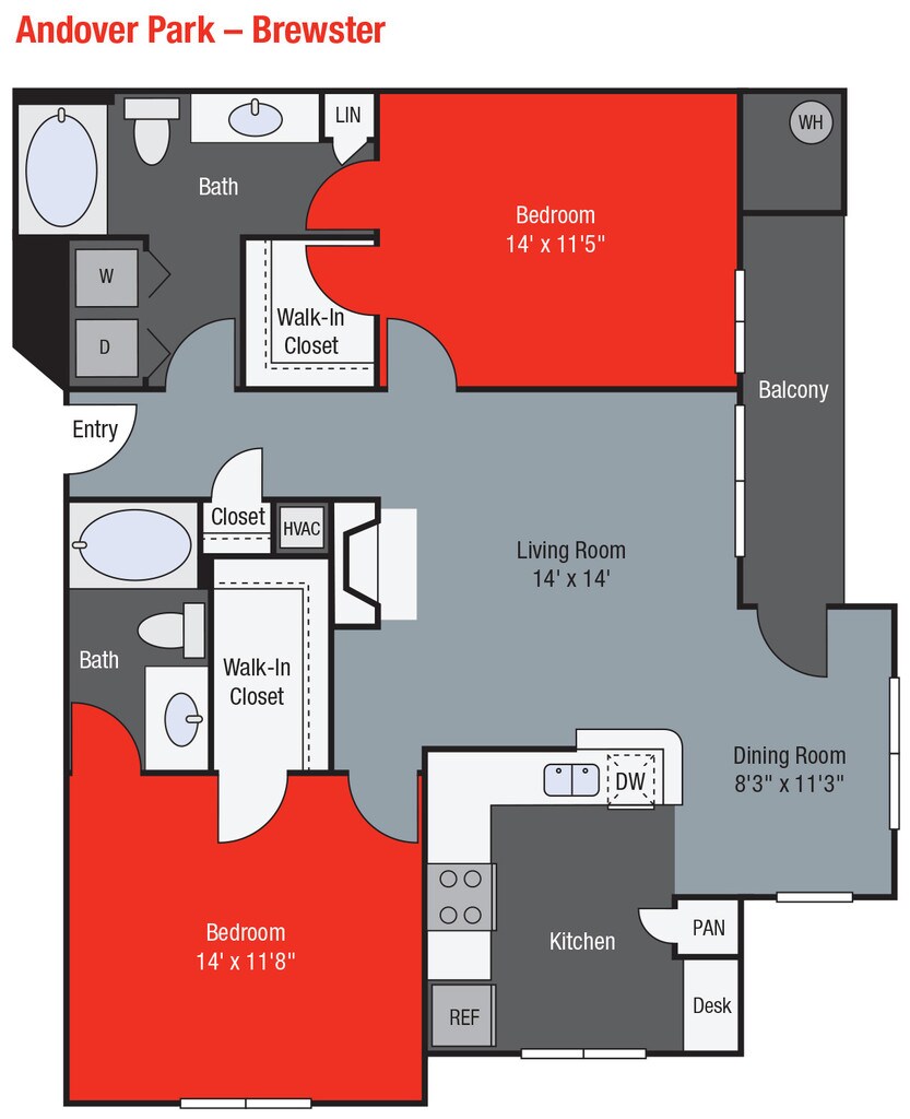 2 Beds, 1 Bath, 926 sq ftPlus FeesAvailable NowModel Gallery