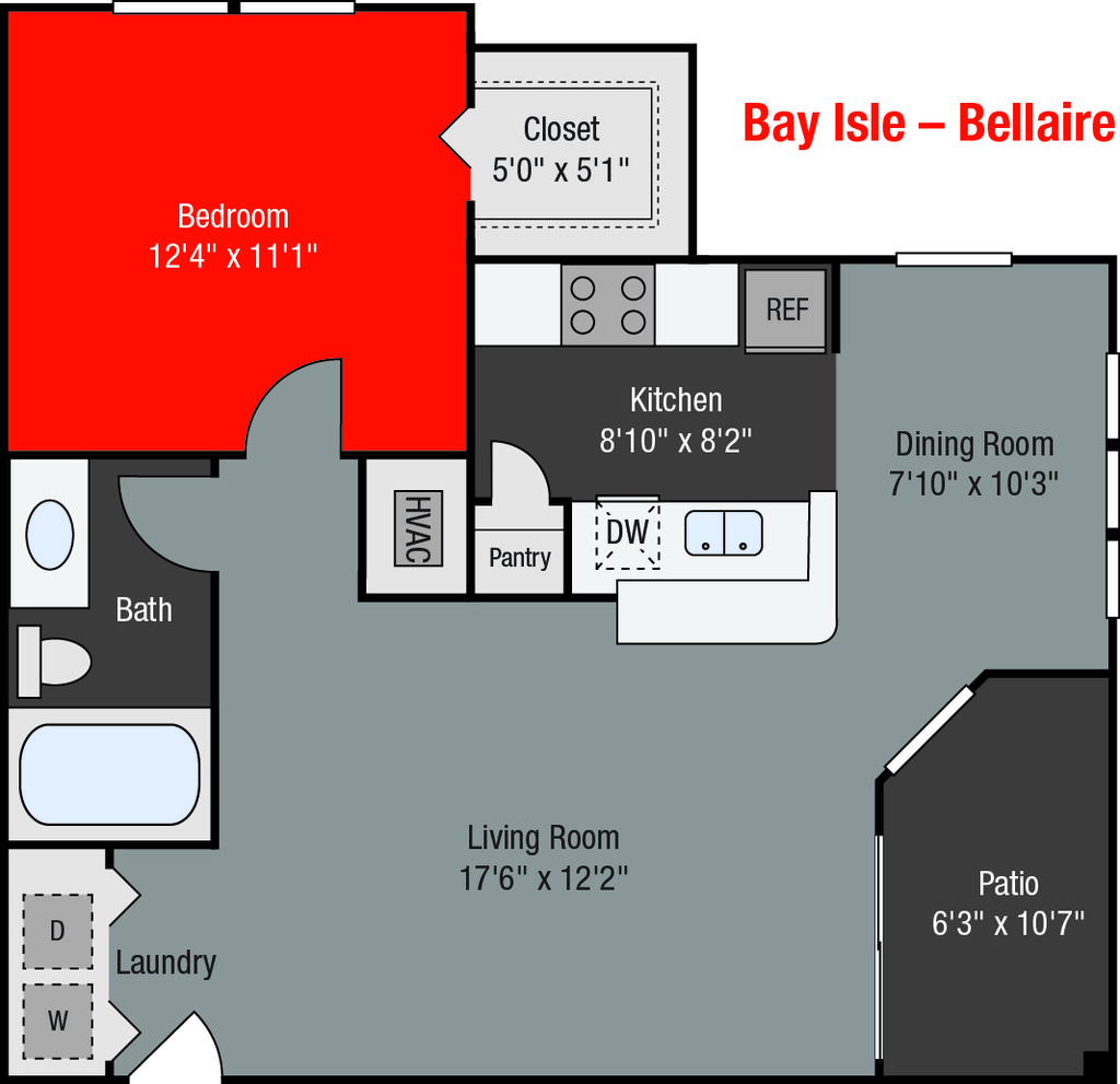 1 Bed, 1 Bath, 826 sq ftAvailable NowLargest 1 BedroomThis is the largest 1 Bedroom at this PropertyModel Gallery
