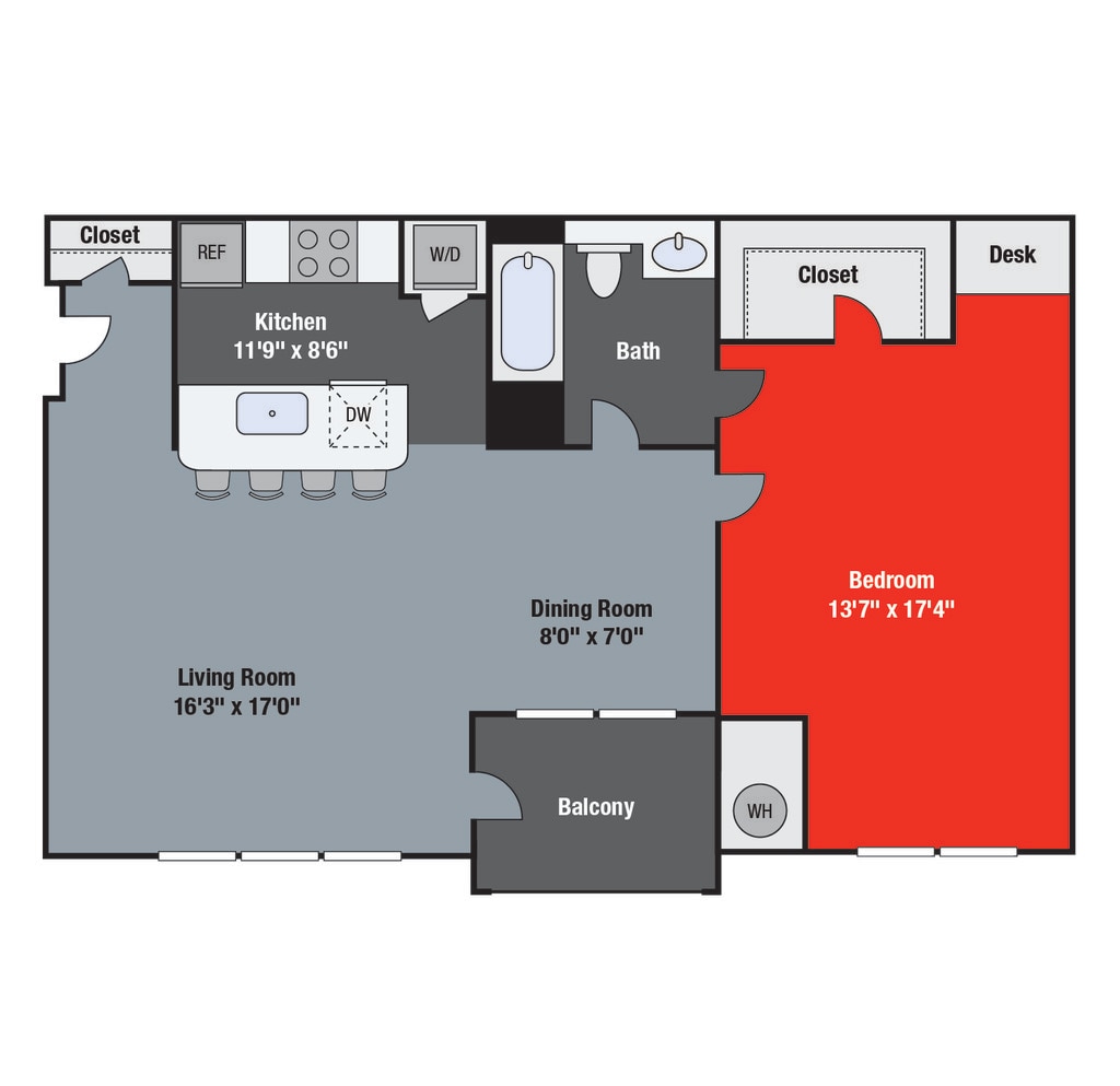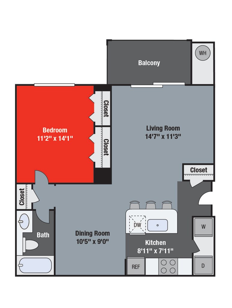 1 Bed, 1 Bath, 1033 sq ftAvailable NowLargest 1 BedroomThis is the largest 1 Bedroom at this PropertyModel Gallery