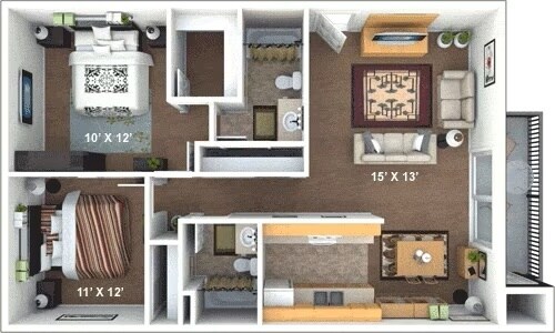 Apartment Model: 2x2$1,6012 Bedroom, 2 Bath, 864 sq ftAvailable Now![]()