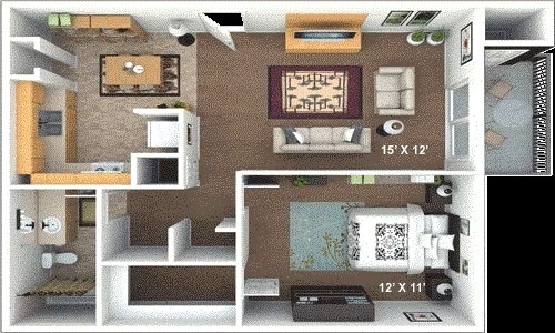 Apartment Model: 1x1From $1,3411 Bedroom, 1 Bath, 600 sq ftAvailable Now![]()