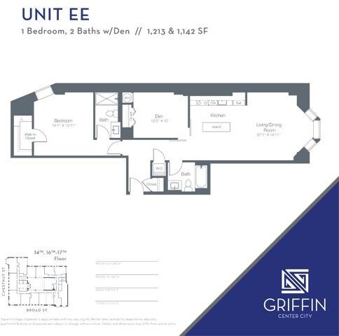 THE GRIFFIN CENTER CITY offers Studio to 2 Bedroom apartments starting from $1,632 and having 430–1,809 sq ft. Here is the current pricing and availability: