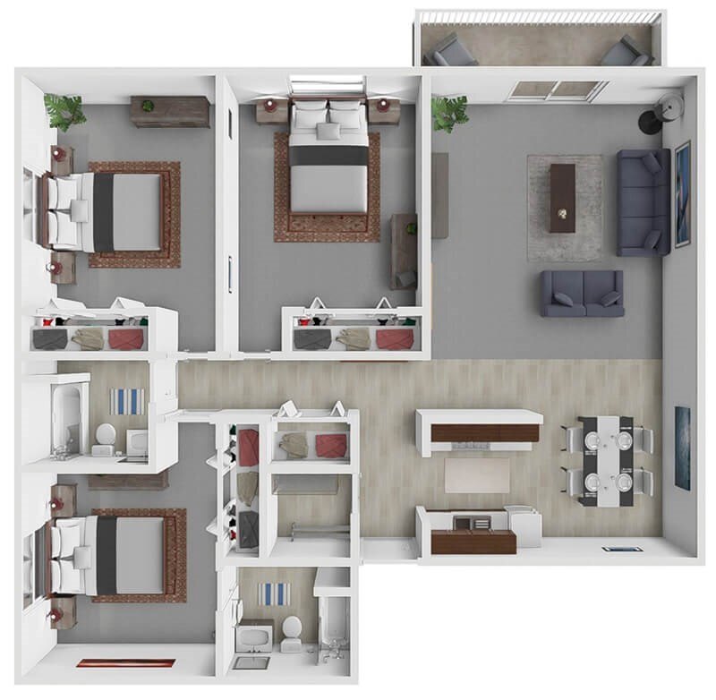 3 Beds, 2 Baths, 1235 sq ftModel Gallery