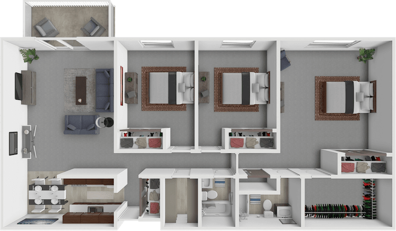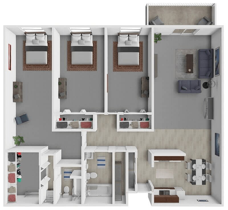 3 Beds, 2 Baths, 1080 sq ftModel Gallery