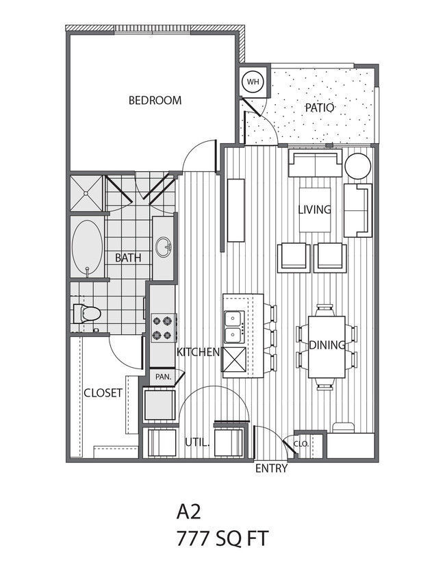 Apartment Model: A2From $1,3631 Bedroom, 1 Bath, 777 sq ftAvailable November 11, 2025![]()